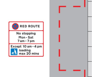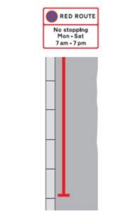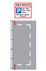 Some parts of red routes are marked for parking. Parking bays can be identified by a 'P' on the signs that accompany them. The signs will tell you: (2 correct answers)